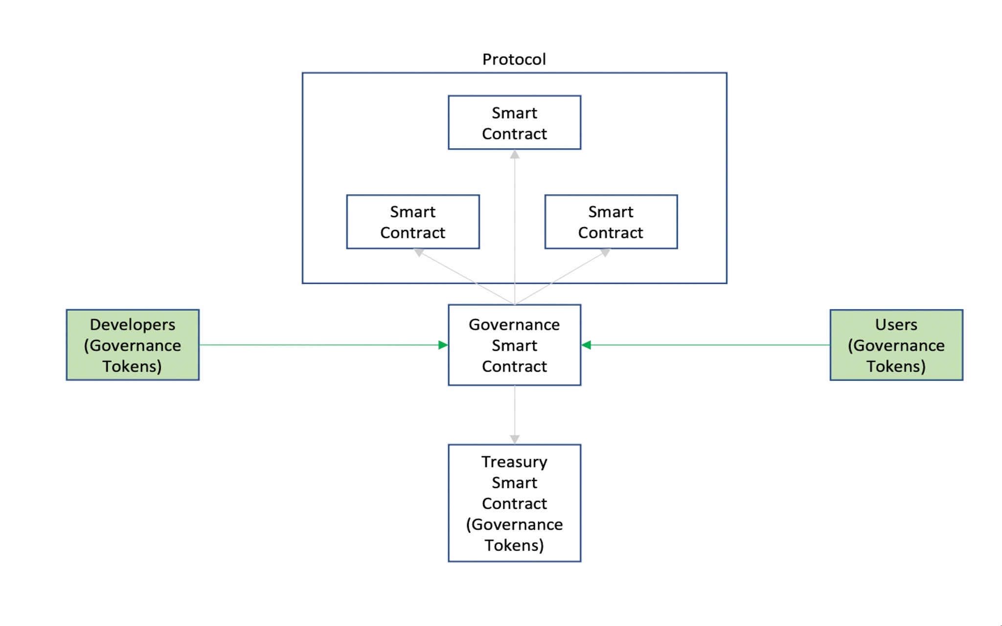Governance tokens can be retained within the smart contracts or air dropped into the treasury smart contracts. ↩ -
